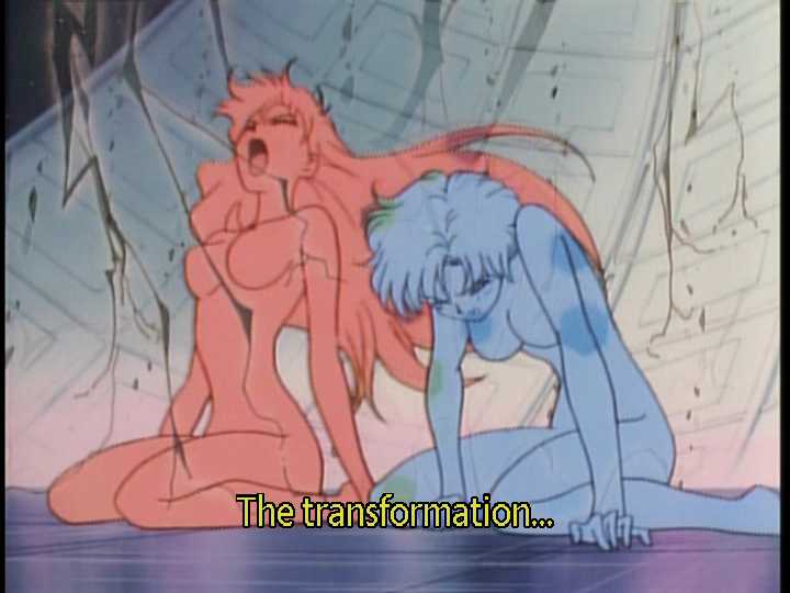 (9 seconds) The scene where the senshi get attacked and start to "detransform" is cut. Guess all those body lines were too much for Optimum/Pioneer to take.
