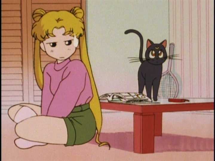 (1 second) The end of the scene with Luna and Usagi arguing over studying is cut short because Usagi makes a very cliched "anime face". You know, the ones where their eyes get all super-deformed and they look really funny? The ones that are supposed to make you laugh? Yeah...One of those faces. Apparently laughter in children promotes death in old people. I think that was DiC's logic for getting rid of this one.